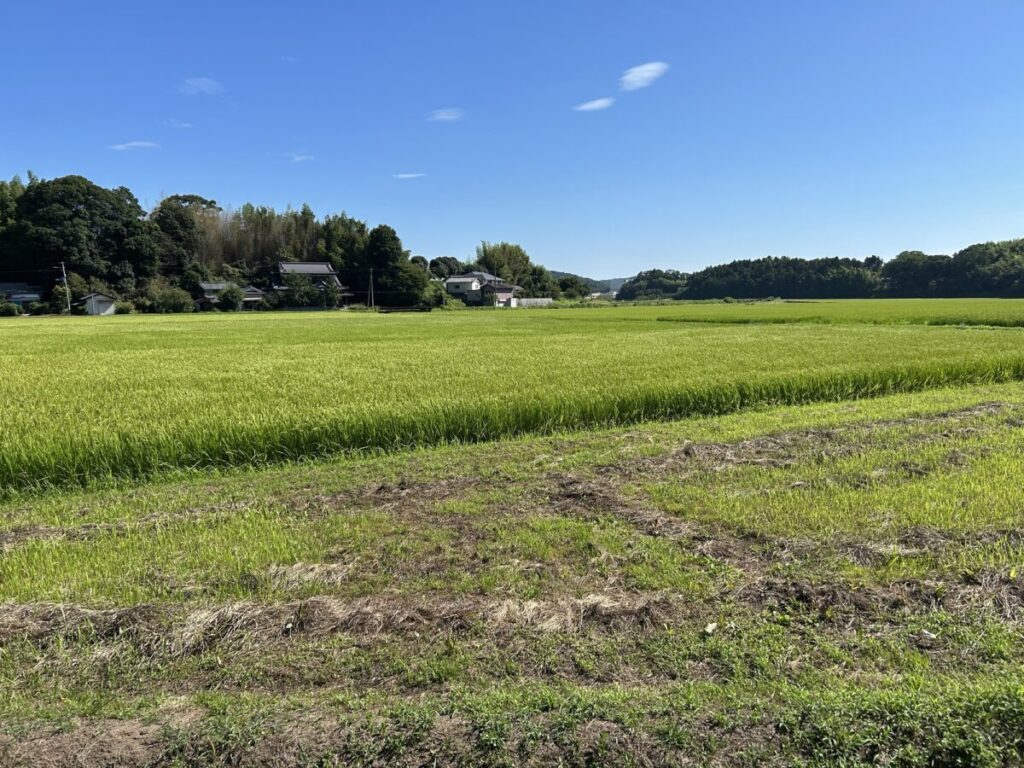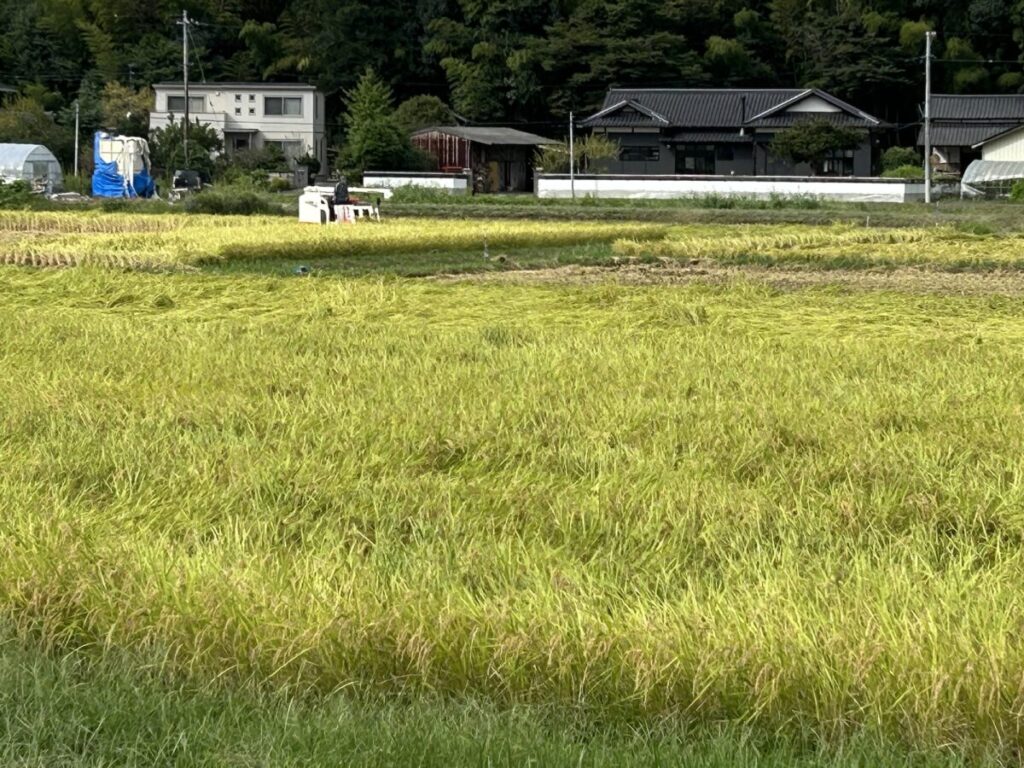 現在、この地区の稲刈りは九割ほど済んでいます🌾