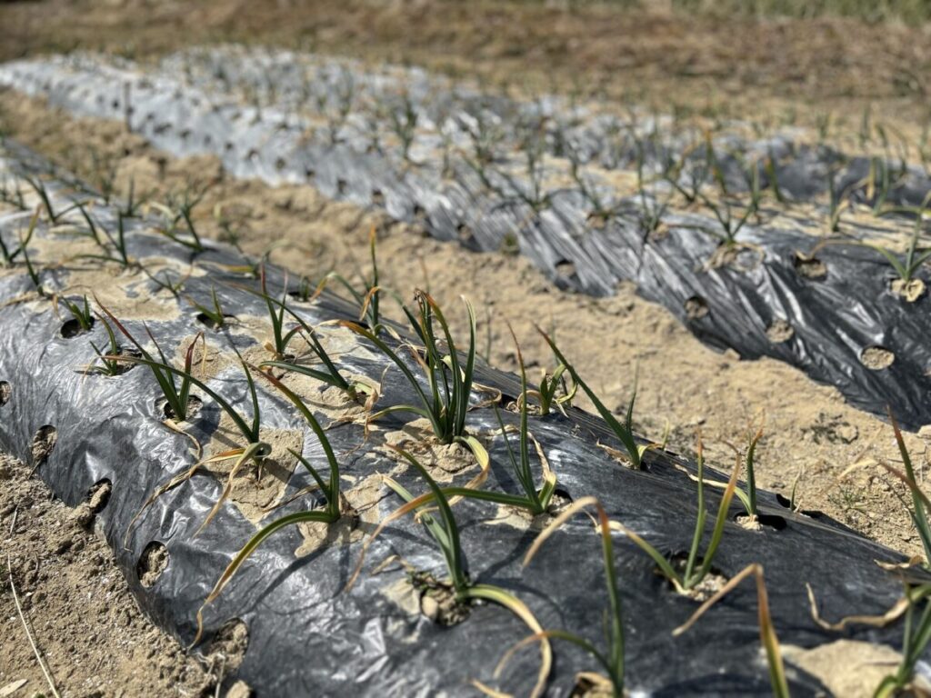 昨年の11月に植えた、タマネギとニンニクが成長しています🌱