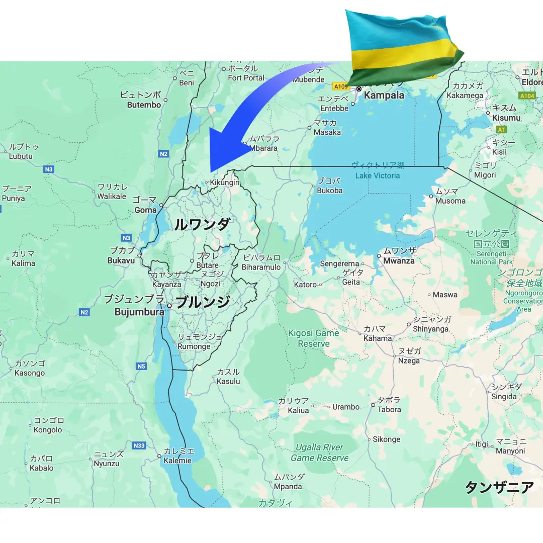 今月は中央アフリカの国、ルワンダ共和国からの豆をお届けします。西にコンゴ民主共和国、北にウガンダ、東にタンザニア、南にブルンジと国境を接しています。いずれもコーヒーの名産国です。